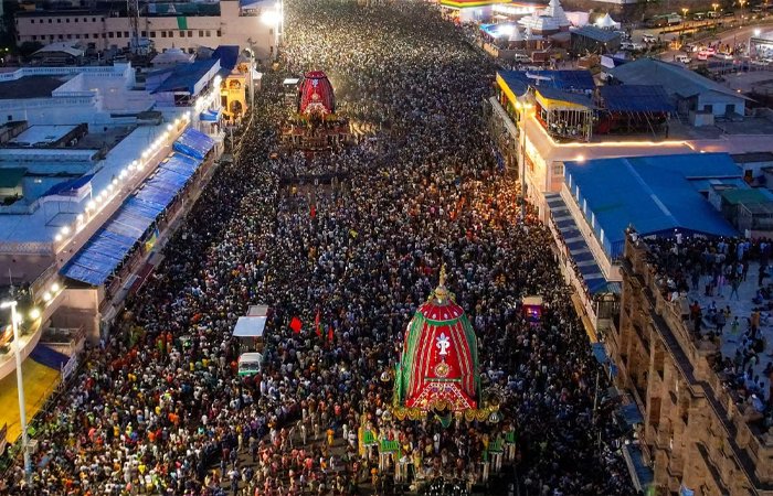 વહેલી સવારે પાંચ વાગ્યે શંકરાચાર્ય સ્વામી નિશ્ચલનંદા સરસ્વતીએ ભગવાન જગન્નાથ, ભગવાન બલભદ્ર અને દેવી સુભદ્રાના રથને ખેંચીને પ્રસ્થાન કરાવ્યું હતું.