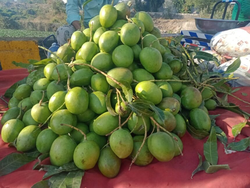 જૂનાગઢ સોરઠ પંથક કેસર કેરી વિશ્ર્વ વિખ્યાત છે.અને દેશ વિદેશમાં તેની ખુબ માંગ જોવા મળે છે.ત્યારે ખાવા લાઈક કેસર કેરી હજુ બજારમાં આવી નથી એ પહેલા ખાખડી બજારમાં એક મહિનાથી જોવા મળી રહી છે.ભારે પવનના લીધે નાની નાની ખાખડી આંબા પરથી ખરી પાડવાના લીધે મોટા પ્રમાણમાં બજારમાં જોવા મળી રહી છે.ખાખડી વધુ પ્રમાણમાં આવતા તેના ભાવમાં ઘણો ઘટાડો જોવા મળી રહ્યો છે એક મહીના પેહલા રૂ.300ની કિલો ખાખડી આજે 40 થી 50 રૂપિયામાં વેચાઈ રહી છે અને થોડું ફળ પણ મોટું થતા લોકો કાચી કેરીના અથાણાં પણ શરુ કરી દેવામાં આવ્યા છે.જયારે કેસર કેરીનું આગમન મેં મહિનાના પ્રથમ સપ્તાહમાં જોવા મળશે.