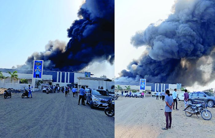 રાજકોટમાં વધુ એક નમકીન બનાવતી કંપનીમાં ભીષણ આગ લાગી છે. નાકરાવાડી નજીક વેફર-નમકીન બનાવતી ઊંઇણ કંપનીમાં સવારે 9 વાગ્યે આગ લાગતા દોડધામ મચી છે. ઘટનાની જાણ ફાયર વિભાગને કરાતા શરૂઆતમાં એક અને બાદમાં આગ વિકરાળ હોવાથી વધુ ચાર ગાડી સ્થળે બોલાવામાં આવી છે. હાલમાં 50થી વધુ ફાયર ફાઈટરો દ્વારા પાણીનો મારો ચલાવી આગને કાબૂમાં લેવાનો પ્રયાસ થઈ રહ્યો છે. હાલમાં કોઈ જાનહાનિના સમાચાર સામે આવ્યા નથી, પણ આગને કારણે મોટું નુકસાન થવા પામ્યું છે. શરૂઆતમાં આગ એટલી વિકરાળ હતી કે, તેના ધુમાડાના ગોટેગોટા પાંચ કિલોમીટર સુધી દેખાયા હતાં. BKZ ફૂડ લિમિટેડ નામનીના એચઆર મેનેજર સત્યજિત ઝાલાએ જણાવ્યું કે, અહીં સવારે 9 વાગ્યાનો સમય છે. 9.15 આસપાસ મને કોલ આવ્યો હતો કે, કંપનીમાં આગ લાગી છે, જેથી મેં તાત્કાલિક ફાયર વિભાગમાં જાણ કરી હતી. હું ચોખડા સર્કલથી ફાયરની ગાડીઓ સાથે જ આવ્યો હતો. વેફર્સ અને નમકીનની કંપની હોવાથી આગ વધુ ફેલાય તેવું તમામ મટિરિયલ હોવાથી આગ વધારે ફેલાઈ છે. આગ લાગવા પાછળનું કારણ હજુ સામે આવ્યું નથી. કંપનીમાં 200થી 250 જેટલા કર્મચારી કામ કરે છે, તમામને સલામત બહાર કાઢી લેવામાં આવ્યો હતાં.