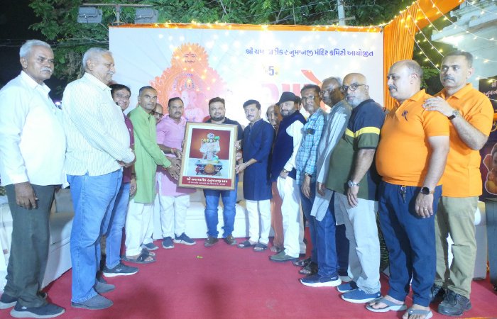 આ પ્રસંગે મુખ્ય કમિટી દ્વારા હનુમાનજીનો ફોટો તથા સાલ ઓઢાડવામાં આવી હતી. આ પ્રસંગે મુખ્ય મહેમાનો પી. બી. જાડેજા નિવૃત સિનિયર ઓડિટ ઓફિસર, ડી ટી વાઘેલા-નિવૃત પોલીસ ઇન્સ્પેક્ટર, આર એફ ગોહિલ -નિવૃત પોલીસ ઇન્સ્પેક્ટર, બલભદ્રસિંહ ચુડાસમા (દેવચડી) એડવોકેટ, નીરૂભા વાઘેલા – કોર્પોરેટર, ધર્મેન્દ્રભાઈ ભગત – ઇઉંઙ અગ્રણી, જીગરસિંહ જાડેજા સૌરાષ્ટ્રના ખ્યાતનામ ન્યૂરો સર્જન, હરભમજીભાઈ જાડેજા-મોટા મવા, પી જે રાણા ગેડી, ભારતસિંહ ઝાલા-રતનપર, ભરતસિંહ ઝાલા-અડવાળ, ગિરિરાજસિંહ રાઠોડ (છારા) કાર્યકરી પ્રમુખ, માયાબા જાડેજા-પ્રમુખ રુદ્ર શક્તિ મહિલા મંડળ, નયનાબા જાડેજા ઉપપ્રમુખ, બળદેવસિંહ ચુડાસમા નિવૃત બેન્ક અધીકારી, આર ડી જાડેજા-વચલી ઘોડી, ગજુભા જેઠવા-નિવૃત બેન્ક અધિકારી, શક્તિસિંહ જાડેજા-ખીલોસ, બી ટી જાડેજા-હડમતીયા જંક્સન, રાજભા વાઘેલા, અશોકસિંહ જાડેજા, વિનુભાઈ પરમાર-ઇઉંઙ અગ્રણી, સુરેશભાઈ પટેલ-પટેલ કોમ્પ્યુટર, હઠીસિંહ જાડેજા, ડી વી ગોહિલ, નરેન્દ્ર કતિરા-નિવૃત બેન્ક અધિકારી સહીત મોટી સંખ્યામાં મહેમાનો ઉપસ્થિત રહ્યા હતા.