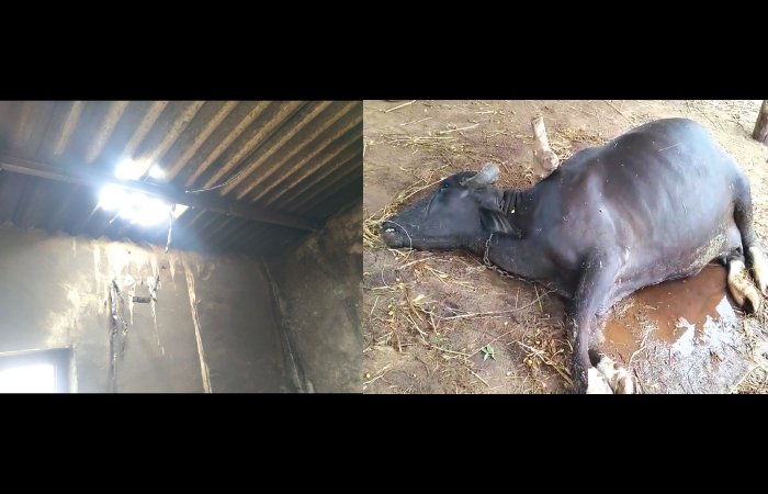 વીજળી પડવાથી એક વ્યક્તિ અને ત્રણ ભેંસના મોત