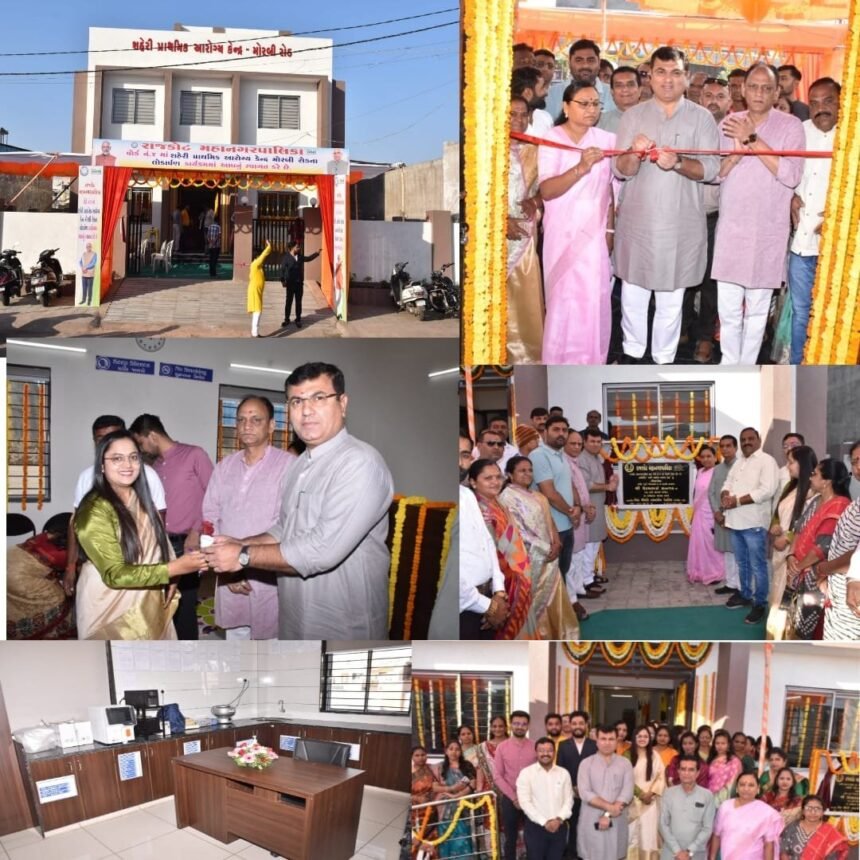 મોરબી રોડ જકાત નાકા પાસે નવનિર્મિત શહેરી પ્રાથમિક આરોગ્ય કેન્દ્રનું લોકાર્પણ કરતા ધારાસભ્ય ઉદય કાનગડ