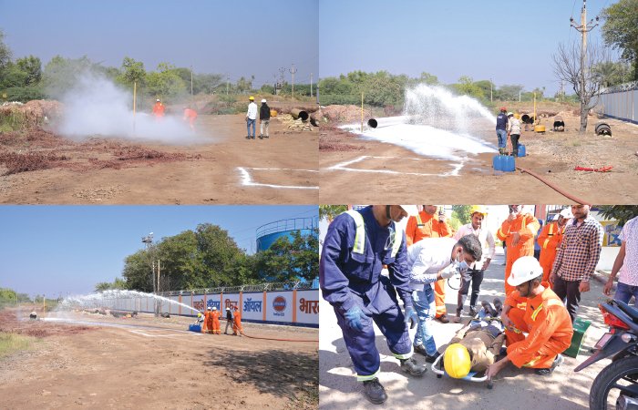 મેન્ટેનન્સ ટીમ તુરંત જ પહોંચી ગઈ હતી. ક્રૂડ સીપેજ વધી જતા લીકેજમાં ફેરવાયું અને પરિણામે આગ લાગવાનું શરૂ થતાં આઈ.ઓ.સી.એલની ટીમ દ્વારા ફાયર એક્સ્ટીંગ્યુશરની મદદથી આગ બુઝાવવાના પ્રયાસો કરવામાં આવ્યા હતા. આ દરમિયાન આ ઘટનામાં એક વ્યક્તિ ઘાયલ પણ થયો હતો. જેને આઈ.ઓ.સી.એલની મેડિકલ ટીમ દ્વારા પ્રાથમિક સારવાર આપવામાં આવી હતી. ગણતરીની મીનીટોમાં જ ફાયર બ્રિગેડની ટીમ અને 108 એમ્બ્યુલન્સની ટીમ પણ પહોંચી ગઈ હતી. ફાયરની ટીમ દ્વારા આગ ઉપર કાબુ મેળવી લીધા બાદ પાઈપલાઈન લીકેજ રીપેરીંગની કામગીરી ત્વરિત હાથ ધરવામાં આવી હતી. જ્યારે સમગ્ર સ્થિતિ ઉપર કાબુ મેળવ્યા બાદ આઈ.ઓ.સી.એલના ડેપ્યુટી જનરલ મેનેજર અને સ્ટેશન ઇન્ચાર્જ દ્વારા સમગ્ર ઘટનાને ઓફસાઇટ મોકડ્રીલ જાહેર કરવામાં આવતા આજુબાજુના સામાન્ય રહીશો અને રાહદારીઓ દ્વારા રાહતનો શ્વાસ લીધો હતો.