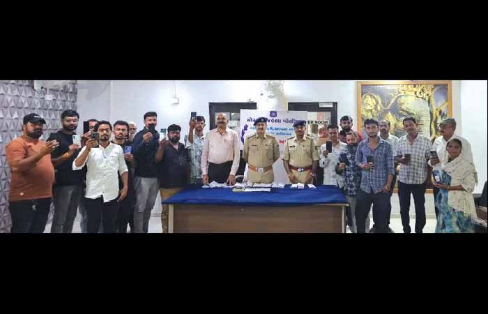 તેરા તુજકો અર્પણ કાર્યક્રમ અંતર્ગત મોરબી એ ડિવિઝન પોલીસે પ્રશંસનીય કામગીરી હાથ ધરી છે. ઈઊઈંછ પોર્ટલના ઉપયોગથી સર્વેલન્સ સ્ટાફે ખોવાયેલા તથા ચોરાયેલા મોબાઈલ અને દાગીના સહિતનો મુદામાલ શોધી કાઢ્યો છે.