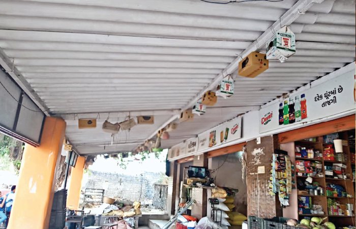 ગીર-સોમનાથ જિલ્લાના વેરાવળ તાલુકાના દેદા ગામે પાન-કરિયાણાની દુકાન ધરાવતાં અશ્ર્વિનભાઈ બારડની દુકાન ‘પરિશ્રમ પાન સેન્ટર’ એટલે જાણે ચકલીઓનું ઘર, પિયર, તીર્થ, આવાસ કોલોની. હાલ પણ દુકાનના છાપરાના હુકમાં પુંઠાના માળા, ચણ, પાણીની સુવિધા સાથે 60થી પણ વધુ માળાઓ કતારબંધ ફ્લેટની જેમ ગોઠવાયેલા છે. જેમાં અંદાજે 120થી 150 જેટલી ચકલીઓ વહેલી સવારે છ વાગ્યે ફર-ફર કરતી આજુબાજુના વિસ્તારો અને ખેતરો તરફ ઊડી જાય છે અને સાંજે પાછી ઘેર માળામાં આવે છે. અશ્ર્વિનભાઈ અને અજયભાઈ કહે છે, કેટલીક વાર તો દુકાનમાં અમે ઘરાકોનું પાન બનાવતાં હોઈએ ત્યારે પાન પલાળવાની કુંડીના કાંઠે ચકલી બેસી પણ જાય. અમોએ દુકાનની છાપરાના ઢાળની થાંભલીઓ ઉપર આ માળા તો ટીંગાડ્યા છે પરંતુ પક્ષીઓને પાણી પીવા દુકાનમાં કુલ છ નાની કુંડીઓ અને ચણવા માટે દાણા નાખી ત્રણ-ચાર ડીશ પણ મૂકી છે.