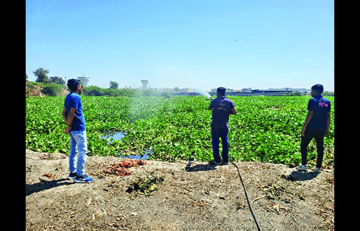 મચ્છર લાર્વા નિયંત્રણ માટે જંતુનાશક દવાઓનો છંટકાવ