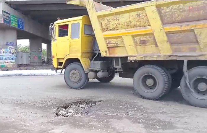 રાજ્યમાં સરકારી વિકાસના કામોમાં થતાં ભ્રષ્ટાચારને લઈને અનેક વખત બ્રિજ ભાંગી પાડવા તથા ભૂવા પડવાની સ્થિતિ ઉદભવ થાય છે જે બાદ સરકારી તંત્ર એક્શન મોડ પર આવે છે પરંતુ જે સમયે વિકાસના કામોમાં ભ્રષ્ટાચાર થાય છે ત્યારે તંત્ર કુંભકર્ણની નિંદ્રામાં હોવાનું નજરે પડે છે તેવામાં સુરેન્દ્રનગર જિલ્લાના સાયલા ખાતે હાઇવે પર સર્કલ નજીક એક ભૂવો પડવાની ઘટના સામે આવી હતી. અહી હાઇવે હોવાથી દરરોજ અનેક વાહન ચાલકો પસાર થતાં હોય છે અને રોડની વચ્ચે પડેલો ભૂવો કોઈપણ સમયે મોટો દુર્ઘટના સર્જે તેવા એંધાણ વર્તાય રહ્યા છે.