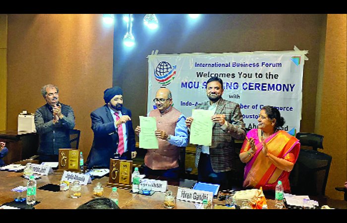 અમદાવાદ સ્થિત આંતરરાષ્ટ્રીય બિઝનેસ ફોરમ, જેનું જાળવું દિલ્હી, મુંબઈ, ચેન્નઈ જેવા મેજર શહેરોમાં પણ છે, અને ઈન્ડો અમેરિકન ચેમ્બર ઓફ કોમર્સ ઓફ ગ્રેટર હ્યુસ્ટન, યુએસએ વચ્ચે ભારત અને અમેરિકાના દ્વિપક્ષીય વેપારને મજબૂત બનાવવા માટે એક ઐતિહાસિક એમઓયુ પર હસ્તાક્ષર થયા છે. ફોરમના સચિવ હિરેન ગાંધી અને ચેમ્બરના પ્રતિનિધિ રાજીવ ભવસાર અને કાર્યકારી નિર્દેશક જગદીપ અહલુવાલિયાની ઉપસ્થિતિમાં આ કરાર સાકાર થયો છે.