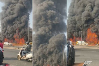 યાનનો કાટમાળ અગનગોળાની જેમ પડ્યો