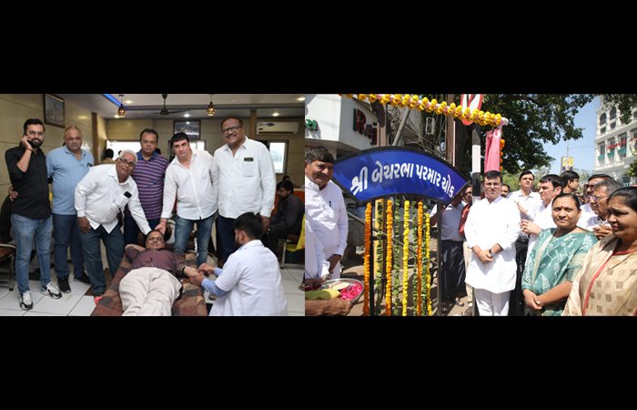 સમાજ શ્રેષ્ઠી રાજપૂત સમાજ અગ્રણી સ્વ. બેચરભા પાંચાભા પરમાર ની ચોથી વાર્ષિક પુણ્યતિથિ નિમિતે તા.2/5/2025 શુક્રવારના રોજ શ્રદ્ધાંજલિ રૂપે એમના પરિવાર દ્વારા મહા રક્તદાન કેમ્પ તથા ભવ્ય સંતવાણી લોકડાયરો અને રાજકોટ મહાનગર પાલિકા દ્વારા બેચરભા પાંચાભા પરમાર ચોક નામકરણ યોજાયુ સવારે 10:00 કલાકે ચોક નામકરણ, સવારે 10:00 વાગ્યાથી 01:00 વાગ્યા સૂધી મહા રક્તદાન કેમ્પ તથા રાત્રે 09:00 કલાકે ભવ્ય સંતવાણી લોકડાયરો કુવાડવા રોડ ડી માર્ટ સામે ” બેચરભા પરમાર ચોક” રાજકોટ ખાતે આ કાર્યક્રમ યોજાયો હતો.રક્તદાન કેમ્પમાં 177 બોટલ રક્તદાન થયુ હતું. આ ત્રિવિધ કાર્યક્રમનો સર્વે સગા સબંધી મિત્રો અને લતાવાસીઓ એ લાભ લીધો અને બહોળી સંખ્યામાં હાજર રહ્યા હતા. ભવ્ય સંતવાણી લોકડાયરામાં હરેશદાન ગઢવી, અનુભા ગઢવી, વિવેક સાંચલા, દેવરાજ ગઢવી ગીર, અલ્પાબેન પરમાર, વીરસિંહ રાઠોડ ભજન લોક સાહિત્યનું જોરદાર રસપાન કરાવ્યું હતુ.