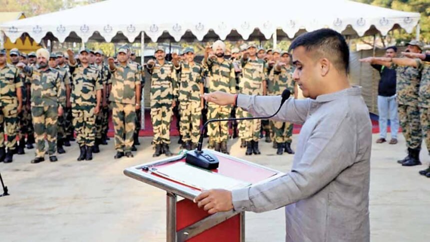 કચ્છમાં સરહદી ગામ મોટી છેરમાં નાયબ મુખ્યમંત્રીએ જવાનો સાથે રાષ્ટ્રગીતનું ગાન કર્યું