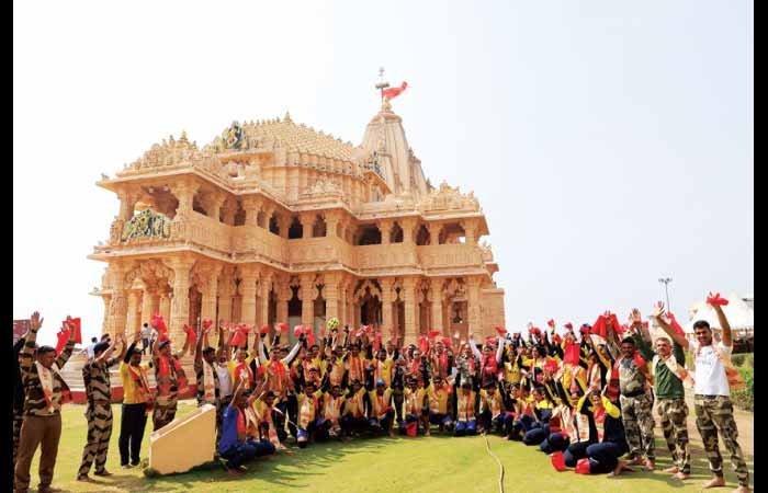 રાષ્ટ્રીય સુરક્ષા અને જનજાગૃતિનો સંદેશ લઈ કેન્દ્રીય ઔદ્યોગિક સુરક્ષા બળના સાઈકલિસ્ટ્સએ સોમનાથ મહાદેવને શીશ ઝૂકાવ્યુ