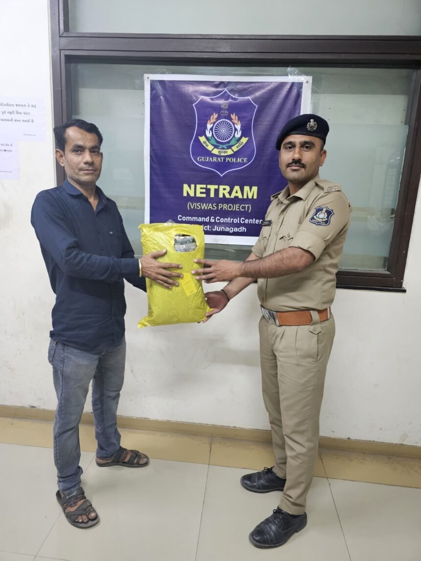 જૂનાગઢના કમલેશભાઇ હોલારામભાઇ સાદીજા જરૂરી કામ સબબ વંથલી જતા હોય ત્યારે ગીરીરાજ સોસાયટીથી બસ સ્ટેશન જવા માટે ઓટો રિક્ષામાં બેસેલ અને બસ સ્ટેશન પાસે ઓટો રિક્ષામાંથી ઉતર્યા બાદ તેમને માલુમ થયેલ કે તેમની રૂ. 4,500ની કિંમતના સામાનની થેલી ઓટો રિક્ષામાં જ ભુલાઇ ગયેલ હોય, જે થેલીમાં તેમના કપડા તથા અન્ય જરૂરી સામાન હોય. કમલેશભાઇએ તે ઓટો રિક્ષા શોધવાનો પ્રયત્ન કરેલ પરંતુ તેમને તે ઓટો રિક્ષા મળેલ નહિ આ બાબતની જાણ નેત્રમ શાખાના પીએસઆઇ પી.એચ.મશરૂને કરતા નેત્રમ શાખા અને પોલીસ સ્ટાફ દ્રારા તુરંત કાર્યવાહી કરી હતી અને કિંમત સામાનની થેલી ખોવાતા વિશ્વાસ પ્રોજેક્ટ અંતર્ગત ઇન્સ્ટોલ કરેલ સીસીટીવી કેમેરાથી નેત્રમ શાખા પોલીસ દ્રારા એક કલાકમાં શોધીને મૂળ માલિકને પરત કરતા અરજદારે પોલીસની આભાર વ્યક્ત કર્યો હતો.