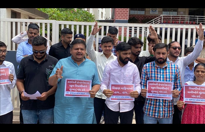 રાજકોટના રેલનગર વિસ્તારમાં આવેલી કર્ણાવતી ઈન્ટરનેશનલ સ્કૂલમાં આજે ગજઞઈંએ પબ્લિસિટી સ્ટંટ માટે હલ્લાબોલ કર્યું હતું. ગજઞઈંએ આજે ફી મુદ્દે કર્ણાવતી સ્કૂલ ખાતે પ્રદર્શન કર્યું હતું. કર્ણાવતી સ્કૂલના સંચાલક રમેશ પાંભરે જણાવ્યું હતું કે, અમારી સ્કૂલ ઋછઈના નિયમ કરતા પણ ઓછી ફી વસૂલી રહી છે ત્યારે ગજઞઈંનો વિરોધ એ ફક્ત કર્ણાવતી સ્કૂલને બદનામ કરવાનો છે. જ્યારે રેલનગર વિસ્તારમાં આ સ્કૂલ મધ્યમવર્ગના વિદ્યાર્થીઓ માટે આશીર્વાદરૂપ છે અને આ સ્કૂલમાં ખુબ જ સારૂં શિક્ષણ પૂરૂં પાડે છે. અન્ય સ્કૂલ જ્યારે 50થી 60 હજારની ફી ઉઘરાવે છે તેની સામે અમે ફક્ત 25 હજાર ફી રાખી છે જેથી મધ્યમવર્ગના બાળકોને સારૂં શિક્ષણ મળે. આમ ગજઞઈંને ફક્ત અમારી સ્કૂલ જ દેખાય છે જે સ્કૂલ મસમોટી ફી ઉઘરાવીને બાળકોને સારૂં શિક્ષણ નથી આપતી ત્યાં વિરોધ કરવાના બદલે અમારી સ્કૂલને જ ટાર્ગેટ કરી છે. અમારી સ્કૂલને બદનામ કરવાનું ષડયંત્ર છે. જો કે, આ ધરણા પ્રદર્શન કરતા અટકાવવા માટે શાળા સંચાલકે પોલીસને બોલાવતા તમામ કાર્યકરોની અટકાયત કરવામાં આવી હતી.