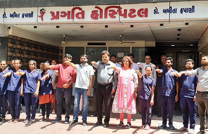 રાજકોટમાં આવેલી પ્રગતિ હોસ્પિટલ દ્વારા મતદાન જાગૃતિ કરાય હતી. પ્રગતિ હોસ્પિટલ ના ડોક્ટર અને સ્ટાફ દ્વારા અમે મતદાન કરશું અને અન્યો ને મતદાન કરવા માટે પ્રેરિત કરી મતદાન કરાવશું તેવી શપથ લીધી હતી. ડોક્ટર અને સ્ટાફે શપથ લેતા કહ્યું કે હું ચોક્કસ મતદાન કરીશ અને મારા સગા સંબંધી મિત્રો અને પડોશીઓને પણ મતદાન કરવાનું ચોક્કસ કહીશ. મતદાન કરવાનો મારો હક અને પવિત્ર ફરજ છે જે હું જરૂર નિભાવીશ આમ પ્રગતિ હોસ્પિટલ ના સ્ટાફ અને ડોક્ટર દ્વારા શપથ લેવાયા હતા.