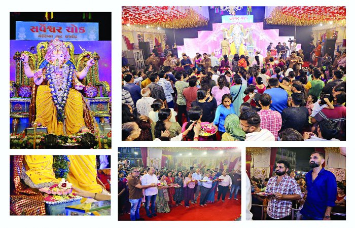 ‘સર્વેશ્ર્વર ચોક ચેરીટેબલ ટ્રસ્ટ’ આયોજીત ગણેશ મહોત્સવમાં ટ્રસ્ટના 80થી વધુ કાર્યકરો સવારે 7-30 થી રાત્રે 1-00કલાક સુધી પોતાના કામ ધંધા પડતા મુકીને પોતાનો સમય આ મહોત્સવને યાદગાર બનાવવા તથા દર વર્ષે નવું નવું નજરાણું રાજકોટમાં આપવા માટે તનતોડ મહેનત કરી રહેલ છે. તેમજ દરેક ભક્તોને પ્રસાદ મળી રહે તે માટે ‘પ્રસાદ ઘર’ પણ બનાવવામાં આવ્યું છે. ‘સર્વેશ્ર્વર ચોક ચેરીટેબલ ટ્રસ્ટ દ્વારા સૌથી મોટુ પ્રાધાન્ય તેમની સફાઈ ગણવામાં આવે છે. તેમજ સરકારના નિતિનિયમો મુજબ સી.સી.ટી.વી. તથા ફાયરના સાધનો પણ રાખવામાં આવ્યા છે. સર્વેશ્ર્વર ચોક ચેરિટેબલ ટ્રસ્ટ દ્વારા ગણપતિ મહોત્સવમાં દરરોજ સવારે 8-30 કલાકે મંગળાઆરતી, સાંજે 7-45 કલાકે મહાઆરતી તથા રાત્રે 12-00 કલાકે શયનઆરતી કરવામાં આવે છે. દર વર્ષની જેમ આ વર્ષે પણ પ્રસાદ ઘર બનાવવામાં આવ્યું છે, જેમાં દરેક દિવસ દરેક ભાવિકોને અલગ અલગ પ્રસાદ આપવામાં આવે છે. દરેક દિવસે 25000થી 30000 ભાવિકો દર્શનનો લાભ લે છે તથા પોતાની માનતા પૂરી કરે છે. દર વર્ષની જેમ આ વર્ષે પણ સર્વેશ્ર્વર ચોક ચેરિટેબલ ટ્રસ્ટ દ્વારા રૂા. 50,00,000નો વિમો લેવામાં આવ્યો છે. તા. 12-9ના રોજ વૃદ્ધાશ્રમનો આરતી તથા જમણવાર રાખવામાં આવ્યો છે. તા. 13-9ના રોજ અનાથ બાળકોનો જમણવાર તથા તા. 15-9ના બ્લડ ડોનેશન કેમ્પ તથા સાંજે 5-00 કલાકે અન્નકૂટ દર્શન રાખવામાં આવેલા છે. તો રાજકોટની ધર્મપ્રેમી જનતાને સર્વેશ્ર્વર ચોક ચેરિટેબલ ટ્રસ્ટ દ્વારા આમંત્રણ પાઠવાયું છે. ગણપતિ મહોત્સવ તા. 17-9 સુધી ચાલશે તેમજ સરકારના નિયમો મુજબ 9 ફૂટની ઊંચાઈની ઈકો ફ્રેન્ડલી મૂર્તિ બનાવવામાં આવી છે તથા વિસર્જન તા. 17-9ના રોજ પોલીસ કમિશનરની સૂચના અનુસાર આજી ડેમની બાજુમાં કરવામાં આવશે. આ મહોત્સવને સફળ બનાવવા સર્વેશ્ર્વર ચોક ચેરિટેબલ ટ્રસ્ટના તમામ સભ્યો જહેમત ઉઠાવી રહ્યા છે.