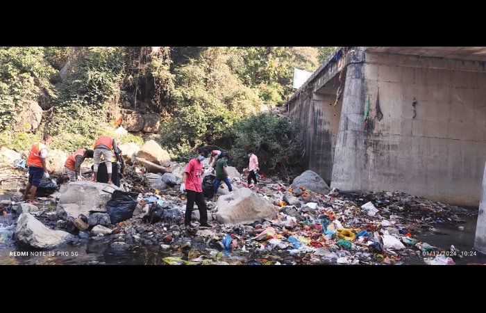 જૂનાગઢ શહેરના ભવનાથ ક્ષેત્રના પાજનાકા પુલની નીચે ખૂબ કચરો જમા થઇ જતા મહાનગર પાલિકાની સેનીટેશન શાખાને જાણ થતા તુર્ત જ ક્લીન અપ શાખા અને સેનીટેશન શાખાના સંયુક્ત ઉપક્રમે કમિશનર ડો.ઓમ પ્રકાશની સુચના અને નાયબ કમિશનર ડી.જે.જાડેજા તથા સેક્રેટરી અને આસી.કમિશનર(ટેક્ષ) તથા સેનીટેશન સુપ્રિટેન્ડેન્ટ કલ્પેશભાઈ જી.ટોલીયાના માર્ગદર્શન મુજબ સેનિ.સુપરવાઈઝર રાજેશભાઈ ત્રિવેદી દ્વારા સફાઈ અભિયાનનું આયોજન કરવામાં આવ્યું હતું. જેમાં હિતેશ ભાઈ સરવૈયા,સફાઈ સુપરવાઈઝરો, ફોરેસ્ટ અધિકારી બી.બી.મકવાણા, રાઠોડભાઈ, વન વિભાગના કર્મચારીઓ, સફાઈ કર્મચારીઓની મદદથી આશરે એક ટન કચરો એકત્ર કરી નિકાલ કરવામાં આવ્યો હતો. આ તકે ધાર્મિક ફોટાઓ, પ્લાસ્ટિકની થેલીઓ, ફૂલ, નારિયેળ અને અન્ય કચરો ન નાખવા અંગે માર્ગદર્શન આપવામાં આપ્યું હતું. તેમજ વન વિભાગના કર્મચારીઓ દ્વારા જાહેરમાં કચરો નાખવા બદલ રૂ.2000નો દંડ વસૂલ કરવામાં આવ્યો હતો.