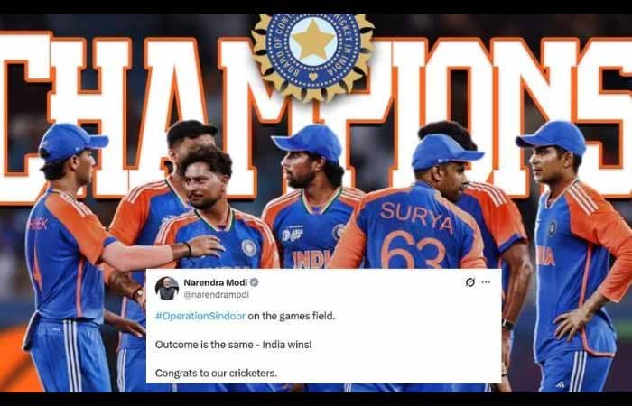 વડા પ્રધાન નરેન્દ્ર મોદીએ એશિયા કપ ફાઇનલમાં પાકિસ્તાન સામે ભારતની પાંચ વિકેટની જીતને “રમતના મેદાનમાં ઓપરેશન સિંદૂર” તરીકે ગણાવ્યું હતું, અને કહ્યું હતું કે પરિણામ એ જ રહ્યું – ભારત જીતે છે – કારણ કે તેમણે ભારતીય ક્રિકેટરોને અભિનંદન આપ્યા હતા.