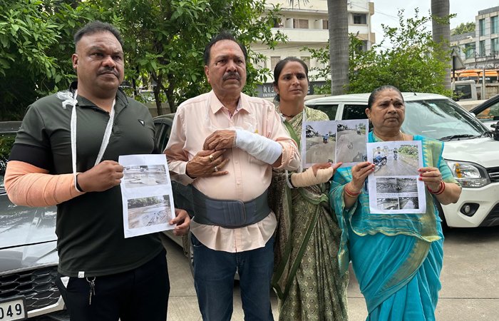 રાજકોટ મહાનગરપાલિકામાં માત્ર વોર્ડ નં-15ના 4 કોર્પોરેટરો જ વિપક્ષ છે જ્યારે અન્ય પક્ષના છે ત્યારે હાલ ચોમાસાના લીધે શહેરમાં ચારેબાજુ રસ્તાનું ધોવાણ થઈ ચૂક્યું છે ત્યારે આજે જનરલ બોર્ડ હોવાથી વિપક્ષી નેતા વશરામ સાગઠીયા, કોર્પોરેટર કોમલ ભારાઈ, મકબુલ દાઉદાણી, ભાનુબેન સોરાણી પાટા બાંધીને આવ્યા હતા અને વિરોધ કર્યો હતો કે, શહેરના લોકોની આવી હાલત છે. રોડ પર ઠેર ઠેર મોટા અને જોખમી ખાડા પડી ગયા છે. આ ખાડાઓ વાહનચાલકો માટે સતત જોખમ ઊભું કરી રહ્યા છે. નાના વાહનચાલકો જેવા કે દ્વિચક્રીય વાહનચાલકો અને સાયકલ ચાલકોને આ ખાડાઓના કારણે ભારે હાલાકી ભોગવવી પડે છે. આ ખાડાઓમાંથી પસાર થતી વખતે વાહનચાલકોને ઝટકા લાગે છે, જેના કારણે અકસ્માતનો ભય પણ સતાવી રહ્યો છે.