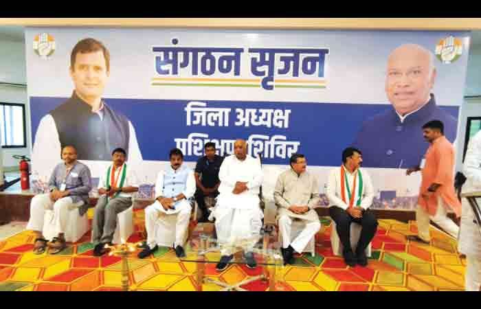 જૂનાગઢ ભવનાથ તળેટી સ્થિત પ્રેરણાધામ ખાતે જિલ્લા કોંગ્રેસ અધ્યક્ષોના તાલીમ શિબિરનો પ્રારંભ દીપ પ્રાગટ્ય કરીને કોંગ્રેસ રાષ્ટ્રીય અધ્યક્ષ મલ્લિકાર્જુન ખડગેએ કરાવ્યો હતો આ આ તાલીમ શિબિરમાં ગુજરાત કોંગ્રેસ અધ્યક્ષ અમિત ચાવડા, વેણું ગોપાલ, શકિતસિંહ ગોહિલે, ભરતસિંહ સોલંકી સહિતના અગ્રણીઓ અને જિલ્લા અને મહાનગરના પ્રમુખો આ શિબિરમાં ઉસ્થિત રહ્યા હતા આ પ્રક્ષિક્ષણ શિબિરમાં પધારેલ રાષ્ટ્રીય કોંગ્રેસ અધ્યક્ષ મલ્લિકાર્જુન ખડગેનું નેતાઓએ ભવ્ય સ્વાગત કર્યું હતું.ભવનાથ પ્રેરણાધામ ખાતે આ 10 દિવસના પ્રક્ષિક્ષણ શિબિરમાં કોંગ્રેસ નેતા રાહુલ ગાંધી પણ હાજરી આપે તેવી શક્યતોઓ સેવાઈ રહી છે તેમ કોંગ્રેસના સંગઠનના રાષ્ટ્રીય નેતાઓ પણ ઉપસ્થિત રહીને ઉપસ્થિત જિલ્લા અને મહાનગર પ્રમુખોને સંબોધન કરી વર્તમાન સરકારની સામે અનેક મુદ્દે લડત આપવા આગામી આયોજન નક્કી કરાશે અને જેમાં ગુજરાત મહાનગર પાલિકાની ચૂંટણી અને આગામી વિધાનસભા ચૂંટણી મુદ્દે રણશિંગુ ફૂંકવામાં આવશે. કેશોદ એરપોર્ટ ખાતે કોંગ્રેસ અધ્યક્ષ મલ્લિકાર્જુન ખડગે આગેવાનો દ્વારા ભવ્ય સ્વાગત કરાયું હતું. જેમાં તેમને જણાવ્યું હતું કે, અમારો મુખ્ય ઉદ્દેશ્ય દેશના સંવિધાન અને લોકતંત્રની રક્ષા કરવાનો છે. તેમણે ભારપૂર્વક કહ્યું કે, આઝાદીના આંદોલનમાં મહાત્મા ગાંધી અને સરદાર વલ્લભભાઈ પટેલ જેવી મહાન વિભૂતિઓએ દેશને એકજૂટ કર્યો, અને આ ધરતી પર આવવું તેમના માટે પૂજનીય છે. તેમણે ઉમેર્યું હતું કે, ભારત આજે પણ આ મહાન નેતાઓના સિદ્ધાંતોને કારણે એકજૂટ છે. જૂનાગઢમાં આયોજિત જિલ્લા કોંગ્રેસ અધ્યક્ષોના તાલીમ શિબિરના ઉદ્ઘાટન પ્રસંગે જ્યાં તેમણે પાર્ટીના કાર્યકરોને સંબોધિત કર્યા હતા. આ કાર્યક્રમમાં પાર્ટીના નેતાઓએ દેશના વર્તમાન રાજકીય વાતાવરણ અને ભવિષ્યની રણનીતિઓ પર પણ ચર્ચા કરી હતી. કોંગ્રેસના રાષ્ટ્રીય અધ્યક્ષ મલ્લિકાર્જુન ખડગેના હસ્તે જૂનાગઢમાં કોંગ્રેસની પ્રશિક્ષણ શિબિરનું ઉદ્ઘાટન કરવામાં આવ્યું છે. આ શિબિરમાં ગુજરાતના 33 જિલ્લાઓ અને 9 મહાનગરોના પ્રમુખો સહિત પ્રદેશ કોંગ્રેસના અનેક અગ્રણી નેતાઓ ઉપસ્થિત રહ્યા હતા. આ પ્રસંગે કોંગ્રેસના વરિષ્ઠ નેતાઓ જેવા કે અમિત ચાવડા, વેણુગોપાલ, શક્તિસિંહ ગોહિલ, ભરતસિંહ સોલંકી, સાંસદ ગેનીબેન ઠાકોર અને અન્ય ધારાસભ્યો પણ કાર્યક્રમમાં જોડાયા હતા. આ શિબિરનો મુખ્ય ઉદ્દેશ્ય ગુજરાતમાં આગામી વિધાનસભાની ચૂંટણીઓ માટેની રણનીતિ ઘડવાનો છે. આ ઉપરાંત, ખેડૂતો, મહિલાઓ, વોટ ચોરી, અને શિક્ષિત બેરોજગારી જેવા પ્રશ્ર્નો પર સરકારને કેવી રીતે ઘેરવી તે અંગે કાર્યકરોને માર્ગદર્શન આપવામાં આવશે આજ થી શરુ થયેલ કોંગ્રેસ પ્રક્ષિક્ષણ શિબિરમાં દશ દિવસ સુધી આગામી ચૂંટણી મુદ્દે રણનીતિ નક્કી કરવામાં આવશે.