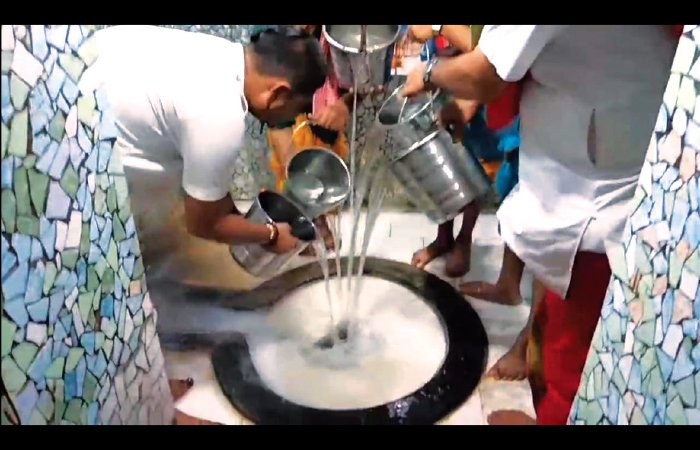 પ્રભાસ ક્ષેત્રમાં આવેલ સિધ્ધનાથ મહાદેવ મંદિરે અનોખી પ્રાર્થના કરવામાં આવી હતી.વરસાદી સીઝન હોવા છતાં મેઘરાજા મન મૂકીને ન વરસતા તીર્થ પુરોહિતો દ્વારા મહાદેવને અનોખી પ્રાર્થના કરવામાં આવી એટલે કે મૂંઝવવામાં આવ્યા હતા.આ પૂજામાં સતત મહાદેવ પર અભિષેક કરી રીઝવવામાં આવ્યા હતા. પ્રભાસ ક્ષેત્રમાં હિંગળાજ માતાજીની ગુફા સમીપ આવેલ સિધ્ધનાથ મહાદેવ મંદિરે તીર્થ પુરોહિતો દ્વારા વરસાદ ન થવાને લીધે અનોખી પૂજા કરવામાં આવી હતી.તેમનું કહેવું છે કે આદિ અનાદી કાળથી અતિવૃષ્ટિ કે અલ્પવૃષ્ટિ જેવા સંકટો આવતા તેમને દૂર કરવા માટે આ પૂજા કરવામાં આવે છે જેમાં સમગ્ર દિવસ દરમિયાન મહાદેવ પર અભિષેક કરી તેમને મૂંઝવવામાં આવે છે અને તેના પરથી તારણ પણ કાઢવામાં આવે છે.ત્યારે ખાસ કરીને વાત કરવામાં આવે તો ગીર સોમનાથના જિલ્લા સહિત આસપાસના વિસ્તારોમાં મેઘરાજા મન મૂકીને વરસતા નથી તેને પગલે આ પૂજા કરવામાં આવી છે.અગાઉ 7 વર્ષ પેહલા આ પૂજા કરવામાં આવી હતી.