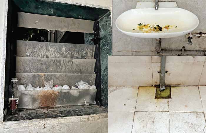 બારીમાં દેશી દારૂની અનેક કોથળીઓ સહિતની અવ્યવસ્થા ઉડીને આંખે વળગે છે