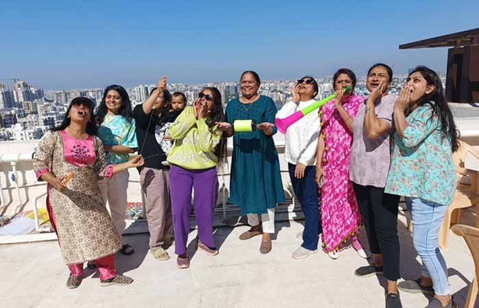 લોકોએ દિવસે આકાશમાં પતંગ, સાંજે ગરબા અને રાત્રે આતાશબાજી કરી મકરસક્રાંતિની ઉજવણી કરી