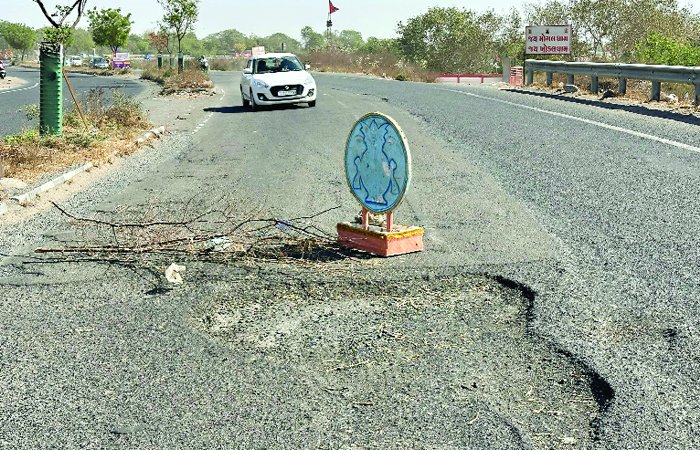 ચોમાસામાં રાજ્યભરમાં કરોડોના ખર્ચે તૈયાર કરેલા રોડ-રસ્તાઓની હાલત એટલી હદે ખરાબ થાય છે કે ત્યાંથી પસાર થતાં વાહનચાલકોને ભારે મુશ્કેલી વેઠવી પડે છે ત્યારે રાજ્યમાં તૂટેલા રસ્તા તાકીદે રીપેર કરવા મુખ્યમંત્રી ભૂપેન્દ્ર પટેલે સૂચના આપી હતી પરંતુ ખાલી પેચવર્ક સંતોષ માની લીધો હતો રાજકોટની આજી ડેમ ચોકડીથી છેક ભાવનગર શહેર પહોંચવા સુધીનો રસ્તો ખખડધજ હાલતમાં છે. આ હાઈવે માત્ર નામનો જ હાઈવે હોય તેવું લાગી રહ્યું છે. આજી ડેમથી ભાવનગર જવા સુધીનો રસ્તો એટલી હદે ખરાબ છે કે વાહનચાલકોને ત્યાંથી નીકળવું પણ માથાના ઘા સમાન થયું છે. આ રસ્તા પર આજદિન સુધી કોઈ જ રિપેરીંગ કામ કરવામાં આવ્યું નથી. હાલ હાઈવે પર મસમોટા ખાડા પડી ગયા હોવાથી સ્થાનિક લોકોમાં ભારે આક્રોશ જોવા મળ્યો છે તંત્ર દ્વારા ક્યારે આ ખાડા બૂરવાની કામગીરી કરવામાં આવશે? તેવી લોકમુખે ચર્ચા ઉઠી છે.
