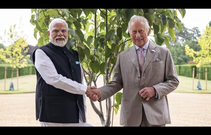 ગઈકાલે બ્રિટનની મુલાકાત દરમ્યાન વડાપ્રધાન નરેન્દ્ર મોદીએ શાહી પરિવારના વડા કીંગ ચાર્લ્સ સાથે મુલાકાત કરી હતી. શ્રી મોદી સેન્ડ્રીધમ હાઉસ પહોંચ્યા હતા. જયાં પ્રિન્સ ચાર્લ્સ અને શાહી કુટુંબે તેનુ સ્વાગત કર્યુ હતું. ભારત અને બ્રિટન વચ્ચે મુક્ત વ્યાપાર કરાર બાદ બ્રિટન પ્રવાસના અંતિમ તબકકામાં શ્રી મોદી બપોરે પ્રિન્સ ચાર્લ્સને મળવા પહોંચ્યા હતા.