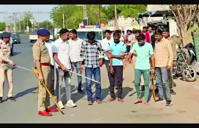 કાલાવડના શીશાંગ ગામે રહેતા યુવકની કાર પર શખસે કાર ચડાવવાનો પ્રયાસ કરી ત્રણ શખસોએ યુવક અને તેના પિતરાઈ ભાઈ પર જીવલેણ હુમલો કર્યાની ફરિયાદ નોંધાવતા પોલીસે ત્રિપુટીને દબોચી લઈ કાયદાનું ભાન કરાવી ઘટનાસ્થળે લઈ જઈ સરઘસ કાઢ્યુ હતુ.