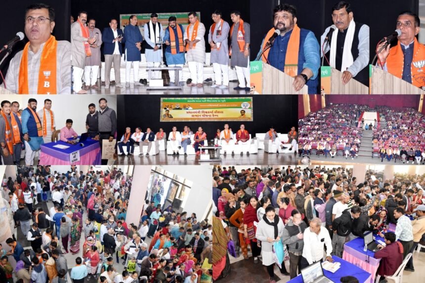 આ કેમ્પમાં પ્રદેશ ભાજપ બક્ષ્ાીપંચ મોરચાના અધ્યક્ષ્ા મયંકભાઈ નાયક, ધારાસભ્ય ઉદય કાનગડ, સાંસદ મોહનભાઈ કુંડારીયા, શહેર ભાજપ પ્રમુખ મુકેશભાઈ દોશી, મેયર નયનાબેન પેઢડીયા, પ્રદેશ ભાજપ અગ્રણી મહેન્દ્રભાઈ સરવૈયા, પ્રદેશ ભાજપ બક્ષ્ાીપંચ મોરચાના મંત્રી પ્રજ્ઞેશભાઈ બ્રહ્મભટૃ, શહેર ભાજપ મહામંત્રી અશ્ર્વિન મોલીયા, વિરેન્દ્રસિંહ ઝાલા, શહેર ભાજપ ઉપપ્રમુખ રમેશભાઈ પરમાર, પરીમલભાઈ પરડવા, પુજાબેન પટેલ, મંત્રી ભગવતીબેન ધરોડીયા, બક્ષ્ાીપંચ સમાજના અગ્રણીઓ સહિતના આગેવાનો ઉપસ્થિત રહ્યા હતા. આ તકે ઉપસ્થિત મહાનુભાવોના વરદહસ્તે મેગા કેમ્પનો દીપ પ્રાગટય કરી પ્રારંભ કરવામાં આવ્યો હતો તેમજ ઉપસ્થિત મહાનુભાવોનું ખેસ અને બુકેથી સ્વાગત કરવામાં આવ્યું હતું. આ તકે સ્વાગત પ્રવચન કરતાં ધારાસભ્ય ઉદય કાનગડએ જણાવેલ કે દેશના યશસ્વી પ્રધાનમંત્રી નરેન્દ્રભાઈ મોદીના નેતૃત્વવાળી કેન્દ્રની ભાજપ સરકાર દ્વારા ગરીબોની સેવા, વંચિતોનું સન્માન, નારી શક્તિ દેશની પ્રગતિ, યુવા શક્તિની આકાંક્ષ્ાાની પરિપૂર્ણતા, ખેડૂતોનું સુનિશ્ર્ચિત કલ્યાણ, સૌના માટે શ્રેષ્ઠ અને સરળ આરોગ્ય સેવાઓ, આધુનિક ઈન્ફ્રાસ્ટ્રકચર, વિશ્ર્વમાં સતત વધી રહેલું દેશનું ગૌરવ, તેમજ અયોધ્યામાં રામ મંદિરનું નિર્માણ, સાંસ્કૃતિક અને આધ્યાત્મિક વારસાના પુન:નિર્માણમાંથી દેશવાસીઓની આસ્થાને બળ આપ્યુ છે. તેમજ કેન્દ્ર તેમજ રાજયની ભાજપ સરકારે સંગઠન તેમજ સમાજની શક્તિને જોડીને અનેકવિધ લોકકલ્યાણકારી અને લોકહીતકારી યોજનાઓ દ્વારા જનતામાં અપાર લોકચાહના મેળવી છે અને લોકોનું જીવનધોરણ ઉંચુ આવી રહ્યું છે તેમજ જનસુખાકારીમાં વધારો થયો છે. આમ ભારતીય જનતા પાર્ટીનો ઉદ્દેશ દેશ માટે ઉજજવળ ભવિષ્ય બનાવવાનો છે ત્યારે વિશ્ર્વકર્મા જયંતિના અવસરે લોન્ચ થયેલ પ્રધાનમંત્રી વિશ્ર્વકર્મા કૌશલ્ય સન્માન યોજનાથી દેશના કારીગરો અને શિલ્પકારોનું પરંપરાગત કૌશલ્ય વધશે. આ યોજનાનો ઉદેશ હાથ અને સાધનો વડે કામ કરનારા કારીગરો અને શિલ્પકારો માટે પરંપરાગત સ્કિલના અભ્યાસને પ્રોત્સાહન આપવા, મજબૂત કરવા અને ગુણવતા સાથે સાથે તેમના ઉત્પાદનો અને સેવાઓની પહોંચમાં સુધારો કરવાનો પણ છે ત્યારે સમાજનો બક્ષ્ાીપંચ વર્ગ, કારીગરો માટે આશિર્વાદરૂપ એવી પ્રધાનમંત્રી વિશ્ર્વકર્મા કૌશલ સન્માન યોજનાથી દેશ આત્મનિર્ભર બનવા તરફ મકકમ ગતિ કરશે અને આત્મનિર્ભર અભિયાન વેગવંતુ બનશે.
