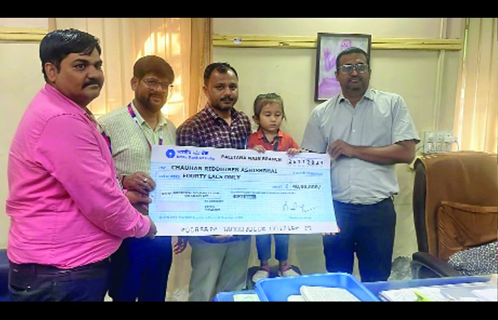 જેને લઈને પાલીતાણા state bank of indiaમાં તેમનું પગાર ખાતુ ધરાવતા હોય જેથી પર્સનલ એકસીડન્ટ પોલિસી માં મળતી સહાય આપવામાં આવી હતી. જેમાં પાલીતાણા એસબીઆઇ બેન્કના મેનેજર મનોજકુમાર તથા કર્મચારીઓ દ્વારા આશિષભાઈના પત્ની રિદ્ધિબેન ચૌહાણને 40 લાખનો ચેક અર્પણ કરવામાં આવ્યો હતો જેમાં પીજીવીસીએલના એક્ઝિટિવ એન્જિનિયર આર.જે રાઠોડ સહિત ઉપસ્થિત રહ્યા હતા અને મૃતકના પરિવારનું આર્થિક ભારણ હળવું કરવા તેમની પોલિસીને આધારે મળતી રકમ 40 લાખના સહાયની જાહેરાત કરી 40 લાખની રકમનો ચેક અર્પણ કરવામાં આવ્યો હતો.