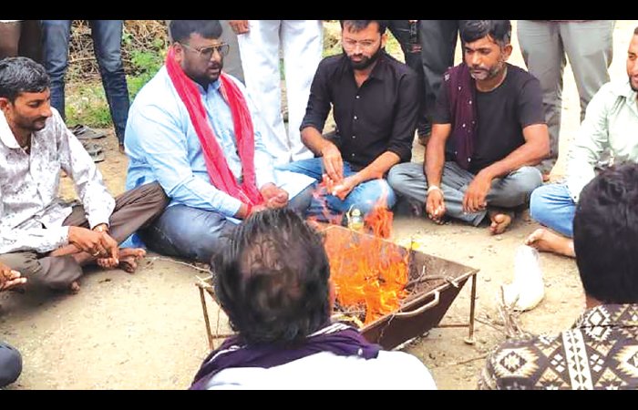 હળવદના સરા-સુંદરીભવાની રોડ પર તૂટેલાં રોડ અને ભ્રષ્ટ શાસન સામે યજ્ઞ કરીને વિરોધ