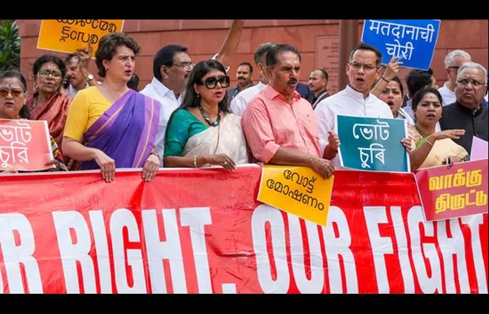 રાહુલ ગાંધીના નેતૃત્વ હેઠળ યોજાયેલી આ રેલીમાં વિપક્ષના તમામ પક્ષોના સાંસદોએ ભાગ લીધો છે. કોંગ્રેસ, સમાજવાદી પાર્ટી, આમ આદમી પાર્ટી, ડીએમકે ઉપરાંત અન્ય પક્ષો વોટ ચોરી વિરુદ્ધની મોર્ચા રેલીમાં જોડાયા છે. આ રેલીમાં કોંગ્રેસ સાંસદ પ્રિયંકા ગાંધી પણ સામેલ છે. આ દરમિયાન શાંતિપૂર્ણ કૂચ દરમિયાન સાંસદોને રોકવાનો પ્રયાસ કરવા માટે પોલીસ દ્વારા બેરિકેડિંગ કરવામાં આવ્યું હતું જેને સમાજવાદી પાર્ટીના પ્રમુખ અખિલેશ યાદવ કૂદતા દેખાયા હતા.