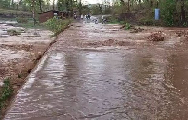 આહવા તાલુકાના ગલકુંડ વિસ્તારના ડુંગર પર ધોધમાર વરસાદ વરસી રહ્યો છે. વરસાદથી નદીમાં અચાનક ઘોડાપુર આવતા વાહન વ્યવહાર ઠપ થઇ ગયો છે. મહત્વપૂર્ણ છે કે હવામાન વિભાગ દ્વારા દક્ષિણ ગુજરાતમાં ખાસ કરીને નવસારી, ડાંગ વિસ્તારમાં આજના દિવસ માટે ગાજવીજ સાથે વરસાદની આગાહી કરવામાં આવી હતી, અને આગાહી અનુસાર ડાંગમાં આજે મેઘરાજા ધોધમાર વરસી રહ્યા છે.