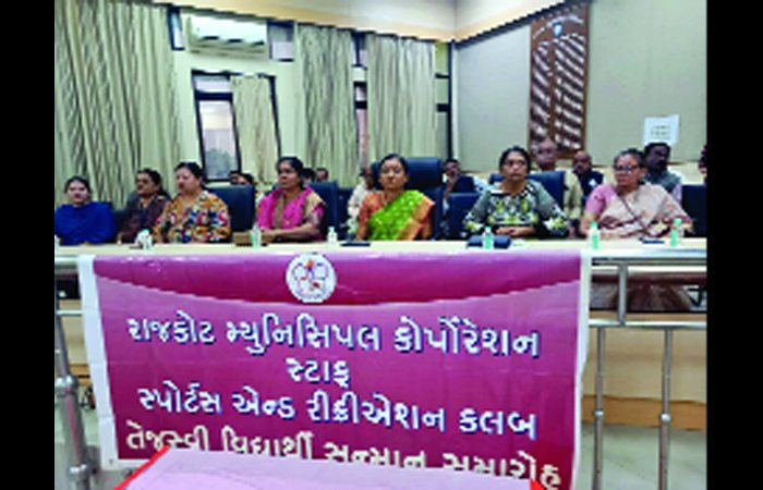 રાજકોટ મ્યુનિસિપલ કોર્પોરેશન સ્ટાફ સ્પોર્ટસ એન્ડ રીક્રિએશન ક્લબ દ્વારા સેન્ટ્રલ ઝોન સભાગૃહ ખાતે અધિકારી/કર્મચારીઓનાં તેજસ્વી છાત્રોને સન્માનિત કરવાનો કાર્યક્રમ તારીખ 24/01/2025ના રોજ રાજકોટ શહેરના માનનીય મેયર શ્રીમતી નયનાબેન પેઢડીયાના અધ્યક્ષ સ્થાને યોજવામાં આવેલ હતો. આ કાર્યક્રમમાં શાસક પક્ષના નેતા શ્રીમતી લીલુબેન જાદવ, રાજકોટ ના જાણીતા ન્યુરો સર્જન ડો. હેમાંગ વસાવડા, લાયન્સ કલબના પ્રમુખ શ્રી નિલીમાબેન ગેરિયા, ચેરમેન સમીર ખીરા, લાયન ભાવનાબેન કોઠારી,મહાનગરપાલિકાના મેનેજરશ્રી કે.બી.ઉનાવા,એએ ડેપ્યુટી એન્જીનીયરશ્રી હિરેન ખખ્ખર,ભરટ બોલાણીયા,આસી.ટાઉનપ્લાનરશ્રી મૌલિક ટાંક યુનિયન લીડરશ્રી વલ્લભભાઇ પીપળીયા વગેરે ઉપસ્થિત રહ્યા હતા.