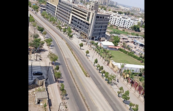 અસહ્ય ગરમીના કારણે રાજકોટના રસ્તા પર જાણે જનતા ક્ફર્યુ લાગી ગયો હોય તેવું તસવીરમાં નજરે પડે છે