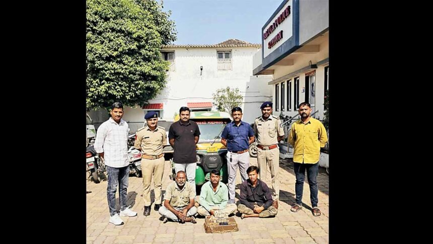 રાજુલા પોલીસ સ્ટેશનના પીઆઇ એ.ડી. ચાવડા દ્વારા આ બનાવની ગંભીરતા લઈ સર્વેલન્સ ટીમને છેતરપીંડીના ગુન્હાના આરોપીને પકડી પાડવા સુચના આપેલ હતી. રાજુલા સર્વેલન્સ ટીમ દ્વારા અલગ અલગ દિશાઓમાં તપાસ અને સીસીટીવીની મદદથી તપાસ કરતા અજાણ્યા આરોપીઓ હોય જેથી હ્યુમન તથા ટેકનીકલ સોર્સ આધારે અમદાવાદની છેતરપીંડી આચરનાર ગેંગને શોધી કાઢવામાં આવી હતી. રાજુલા પોલીસે છેતરપીંડી કરનાર ગેંગના ત્રણ આરોપીને ઝડપી લીધા હતાં. જેમાં અર્જૂન પુનમભાઇ મારવાડી, નરેશ પુનભાઇ મારવાડી, રણછોડ ઉર્ફે બાકીયો રામાભાઇ મારવાડી રહે તમાંમ હાલ અમદાવાદ ત્રણેય આરોપી પાસેથી પોલીસે રોકડ રૂ. 3,37,000, એક રિક્ષા કિ.રૂ. 1,15,000 તથા મોબાઈલ ફોન 500 મળી કુલ 4,42,500 નો મુદ્દામાલ કબજે કરવામાં આવ્યો હતો. રાજુલામાં વેપારીએ સોનાના હારની ખરીદી કરી સોનીને બતાવતા છેતરપીંડી કરતી ગેંગનો પર્દાફાશ થયો હતો. રાજુલા પોલીસ દ્વારા ત્રણેય આરોપીને ઝડપી ધોરણસરની કાર્યવાહી હાથ ધરવામાં આવી છે. આ ત્રણેય આરોપી ગુનાહિત ઇતિહાસ ધરાવે છે. આ કામગીરીમાં રાજુલા પીઆઇ એ.ડી.ચાવડાના માર્ગદર્શન હેઠળ સર્વેલન્સ ટીમના હરપાલસિંહ ગોહિલ, હરેશભાઇ વાળા, મનુભાઇ માંગાણી, સુરેશભાઇ મેર, વાવેરા બીટ ઇન્ચાર્જ એ.એસ.આઇ. બહાદુરભાઇ વાળા, ટાઉન બીટ ઇન્ચાર્જ એ.એસ.આઇ ભરતભાઇ વાળા, પ્રકાશભાઇ બાબરીયા, સુરજભાઇ બાભંણીયા, અમીતભાઇ મકવાણા દ્વારા કરવામાં આવેલ છે.