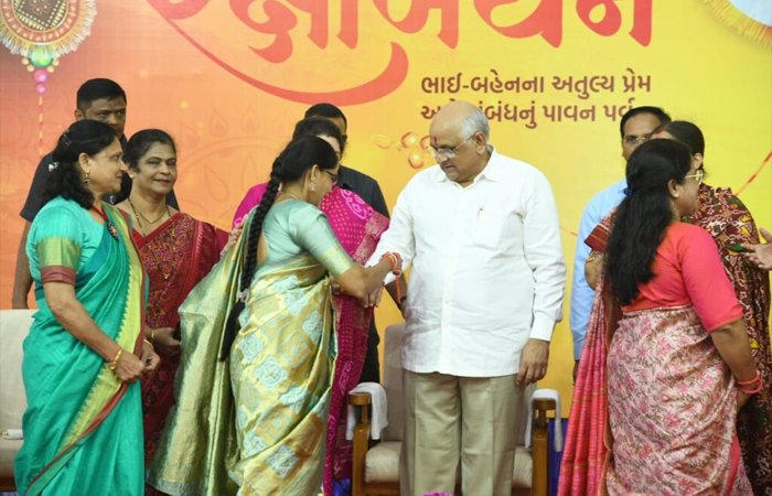 દર વર્ષે રક્ષાબંધનની મુખ્યમંત્રી નિવાસ સ્થાને ઉજવણી કરવામાં આવતી હોય છે. ભાજપ મહિલા મોચરાની બહેનો તેમજ દિવ્યાંગ બહેનો દ્વારા મુખ્યમંત્રીને રાખડી બાંધીને રક્ષા બંધન પર્વની ઉજવણી કરી હતી.