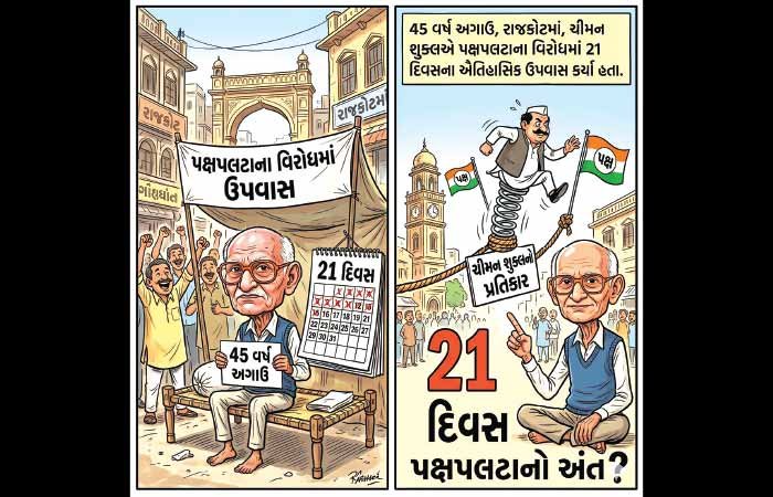 આગામી 28મી તારીખે યોજાનારી સ્થાનિક સ્વરાજ્યની ચૂંટણીઓ પહેલા પક્ષપલટાનો પવન ફૂંકાયો છે, ત્યારે રાજકોટના રાજકીય ઇતિહાસમાં 45 વર્ષ પૂર્વે બનેલી એક ઐતિહાસિક ઘટના આજે ફરી તાજી થઈ છે. આજે જ્યારે નેતાઓ સેંકડો બેઠકો બિનહરીફ થવા પર હરખાય છે, ત્યારે વર્ષ 1981માં રાજકોટમાં લોકશાહીના મૂલ્યો બચાવવા માટે સ્વ. ચીમનભાઈ શુક્લએ (ચીમનકાકા) પક્ષપલટા સામે 21 દિવસના આકરા ઉપવાસ કર્યા હતા.