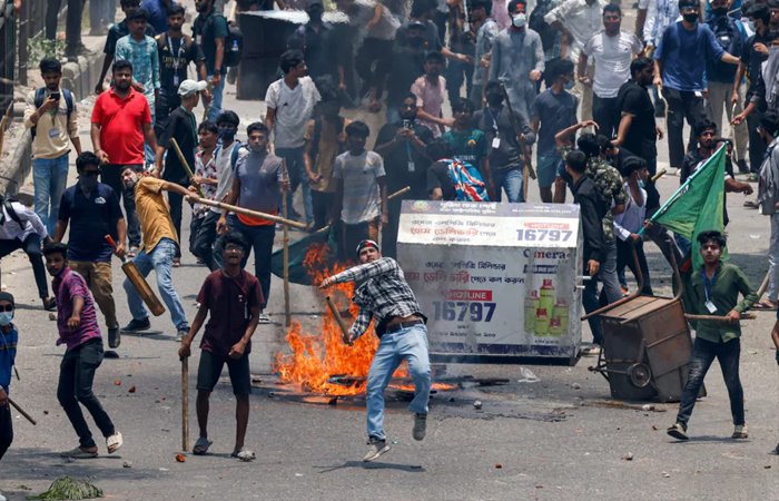 બાંગ્લાદેશમાં આરક્ષણને લઈને ચાલી રહેલો વિરોધ હવે સંપૂર્ણપણે હિંસક બની ગયો છે. પ્રદર્શનકારીઓ દ્વારા મોટા પાયે આગચંપી, પથ્થરમારો અને તોડફોડની ઘટનાઓ બની છે. બાંગ્લાદેશમાં છેલ્લા ઘણા દિવસોથી આ આંદોલન ચાલી રહ્યું છે અને આ આંદોલન મુખ્યત્વે સરકારી નોકરીઓમાં અનામતના વિરોધમાં છે.