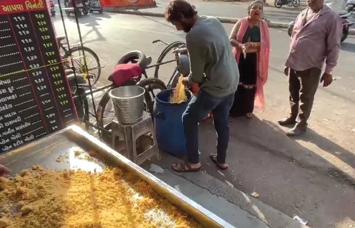 શહેરના સાહેબ લચ્છી એન્ડ ગોલાવાલાના ગોલા અને શ્રી રાજશક્તિ ડેરી ફરસાણ સ્વીટ માર્ટની સ્વીટ ખાવાલાયક નથી. રાજકોટ મહાનગરપાલિકા ફૂડ વિભાગ દ્વારા સર્વેલન્સ ચેકિંગ દરમિયાન જ્યુબેલી મેઇન રોડ, પોલીસ ચોકી સામે આવેલી સાહેબ લચ્છી એન્ડ ગોલાની તપાસ કરતા પેઢીમાં સંગ્રહ કરી ગ્રાહકોને વેચાણ કરતાં ગોલામાં ઉપયોગમાં લેવાતા વાસી માવાનો જથ્થો મળી આવ્યો છે. અંદાજીત 10 કી.ગ્રા. વાસી માવાનો જથ્થો સ્થળ પર નાશ કરવામાં આવ્યો તેમજ પેઢીને યોગ્ય સ્ટોરેજ, હાઈજેનિક કન્ડિશન જાળવવા બાબતે નોટીસ આપવામાં આવી હતી તેમજ જંકશન પ્લોટ, શેરી નં.5/9 કોર્નર પાસે શ્રી રાજશક્તિ ડેરી ફરસાણ સ્વીટ માર્ટની તપાસ કરતા પેઢીમાં ગ્રાહકોને વેચાણ માટે સંગ્રહ કરેલ બેકરી પ્રોડ્કટ- રસપટ્ટીનો એકપાયરી થયેલી અંદાજીત 35 કી.ગ્રા. જથ્થો સ્થળ પર જઠખ વિભાગના વાહનમાં સ્થળ પર નાશ કરવામાં આવ્યો તેમજ પેઢીને યોગ્ય સ્ટોરેજ, હાઈજેનિક કન્ડિશન જાળવવા બાબતે નોટીસ આપવામાં આવી હતી ફૂડ વિભાગની ટીમ તથા એફએસડબલ્યુ વાન સાથે શહેરના વાવડી ગામ વિસ્તારમાં આવેલ ખાદ્યચીજોનું વેચાણ કરતાં કુલ 21 ધંધાર્થીઓની ચકાસણી હાથ ધરવામાં આવી હતી, જેમાં 21 ધંધાર્થીઓને લાઇસન્સ બાબતે સૂચના તેમજ ખાદ્ય ચીજોના કુલ 17 નમૂનાની સ્થળ પર ચકાસણી કરવામાં આવી હતી.