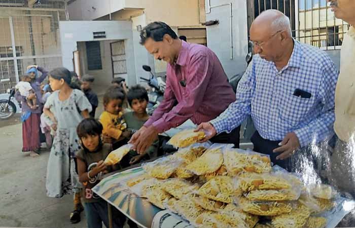 એસ.બી.આઈ. પેન્શનર્સ એસોસિએશન દ્વારા 1500 પેકેટ ફરસાણ અને મીઠાઈનું વિતરણ