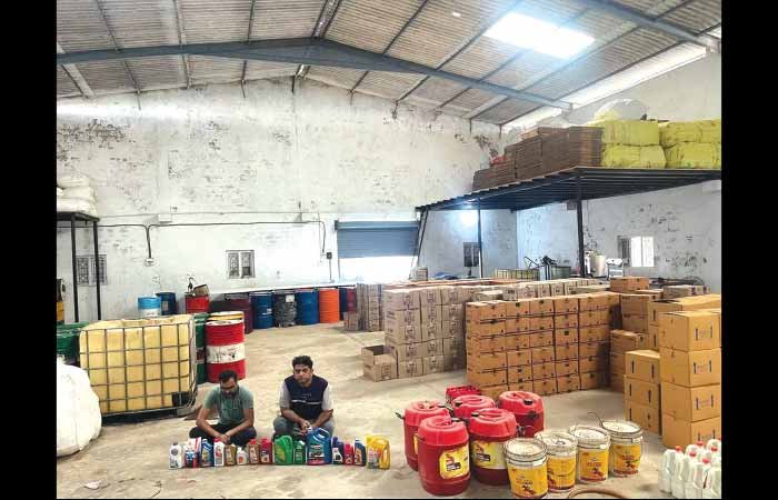 મોરબી જિલ્લાના ટંકારા તાલુકાના લજાઈ ગામની સીમમાં આવેલ ગોડાઉનમાં ગત ઓક્ટોબર-2024માં સ્ટેટ મોનીટરીંગ સેલ (જખઈ)ની ટીમે રેડ કરી હતી. આ રેડ દરમિયાન કેસ્ટ્રોલ સહિત જાણીતી કંપનીઓના નામે ડુપ્લીકેટ ઓઈલ બનાવવાનું મોટું કોભાંડ બહાર આવ્યું હતું. પોલીસે સ્થળ પરથી 23.38 લાખનો મુદામાલ જપ્ત કર્યો હતો અને સેમ્પલ તપાસ માટે એફએસએલમાં મોકલવામાં આવ્યા હતા. હવે, લગભગ 11 મહિના બાદ એફએસએલનો રિપોર્ટ આવતા ટંકારા પોલીસ મથકે ત્રણ આરોપીઓ વિરુદ્ધ ગુનો નોંધાયો છે.