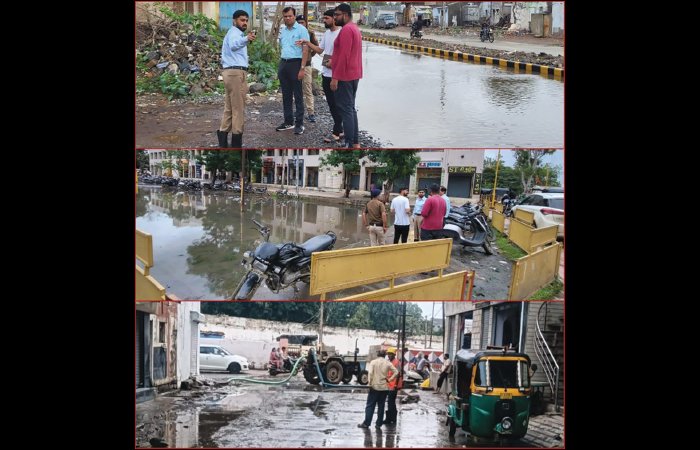 મોરબી મહાનગરપાલિકા દ્વારા જઠખ શાખા, ડ્રેનેજ શાખા અને સિટી બ્યુટીફીકેશન શાખાના સ્ટાફ સાથે જરૂરી વાહનો અને મશીનરી મંજુર કરી, પાણી નિકાલ કાર્ય ત્વરીત શરૂ કરવામાં આવ્યું. મ્યુનિસિપલ કમિશનરે સાઈટ વિઝીટ કરી કામગીરીનું નિરીક્ષણ કર્યું. પાણી ભરાયેલા તમામ વિસ્તારોનું નિરાકરણ સાંજ સુધી અને રાત્રિ દરમિયાન સફાઈ કામગીરી પૂર્ણ કરાશે.