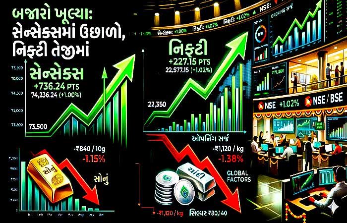 બજાર ખુલતાં જ સેન્સેક્સમાં 736 અને નિફ્ટીમાં 227 પોઈન્ટનો ઉછાળો, સોના-ચાંદીમાં કડાકો