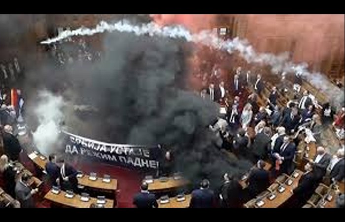 સાંસદો સર્બિયન સરકારની કેટલીક નીતિઓનો વિરોધ કરી રહ્યા હતા. ગુસ્સામાં, સાંસદોએ સંસદ પર સ્મોક બોમ્બ અને ઇંડા ફેંક્યા હતા. આના કારણે સર્બિયાની સંસદ ધુમાડામાં ફેરવાઈ ગઈ હતી.