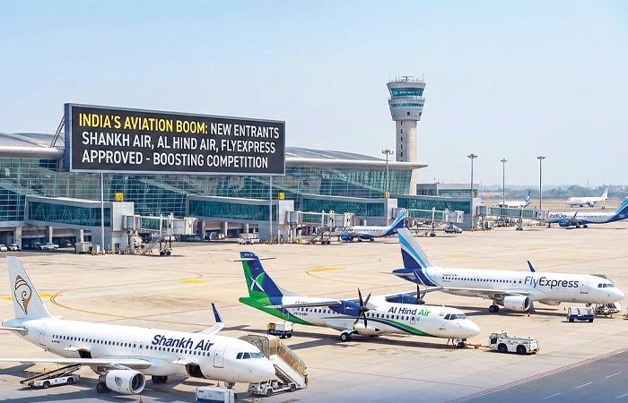 સરકારે એવિએશન સેક્ટરમાં સ્પર્ધા વધારવા અને મોટી એરલાઇન્સ પર નિર્ભરતા ઘટાડવા માટે ત્રણ નવી એરલાઇન્સને નો ઓબ્જેક્શન સર્ટિફિકેટ (ગઘઈ) જારી કર્યું છે. આ એરલાઇન્સના નામ શંખ એર, અલહિન્દ એર અને ફ્લાય એક્સપ્રેસ છે.