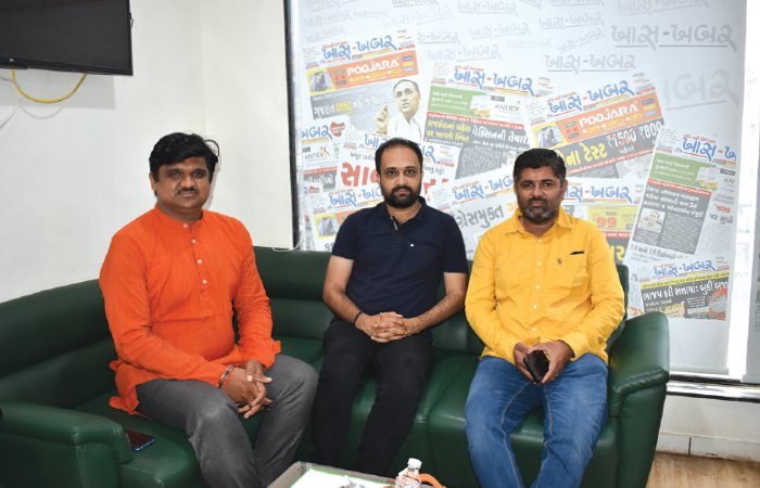 “ખાસ-ખબર” કાર્યાલયની મુલાકાતે ઓમભાઈ છાયા, ભરતસિંહ જાડેજા, મંથનભાઇ માંકડ