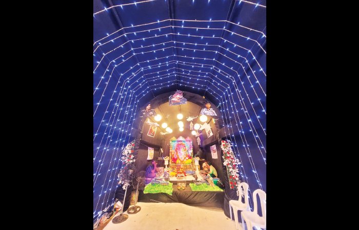 વેરાવળના ડાભોર રોડ પરનો શ્રીજી હાઈટ્સ ગણેશ પંડાલ, ડાયરાના માધ્યમથી વીરરસની સરવાણી માણતા શહેરીજનો